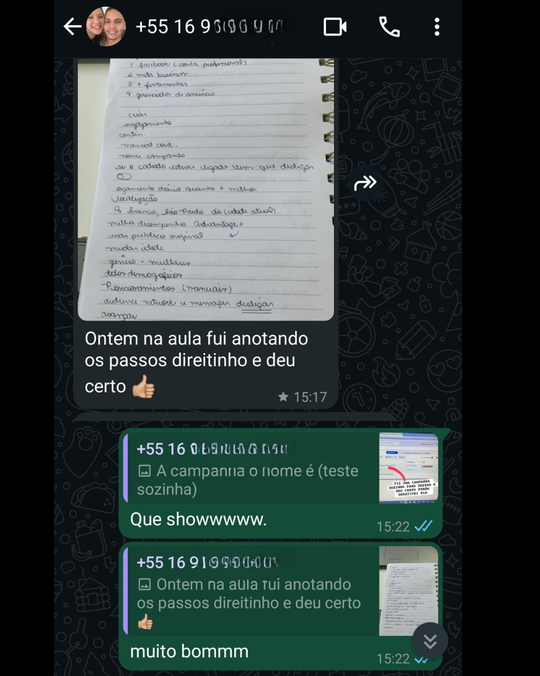 Em nossos encontros, tivemos ideias para criar novas formas de vendas e aumentamos nosso faturamento em 13,2% no primeiro mês e 27% no segundo mês. Obrigado Lucas!"